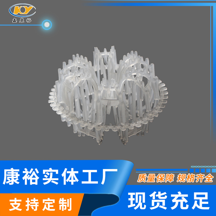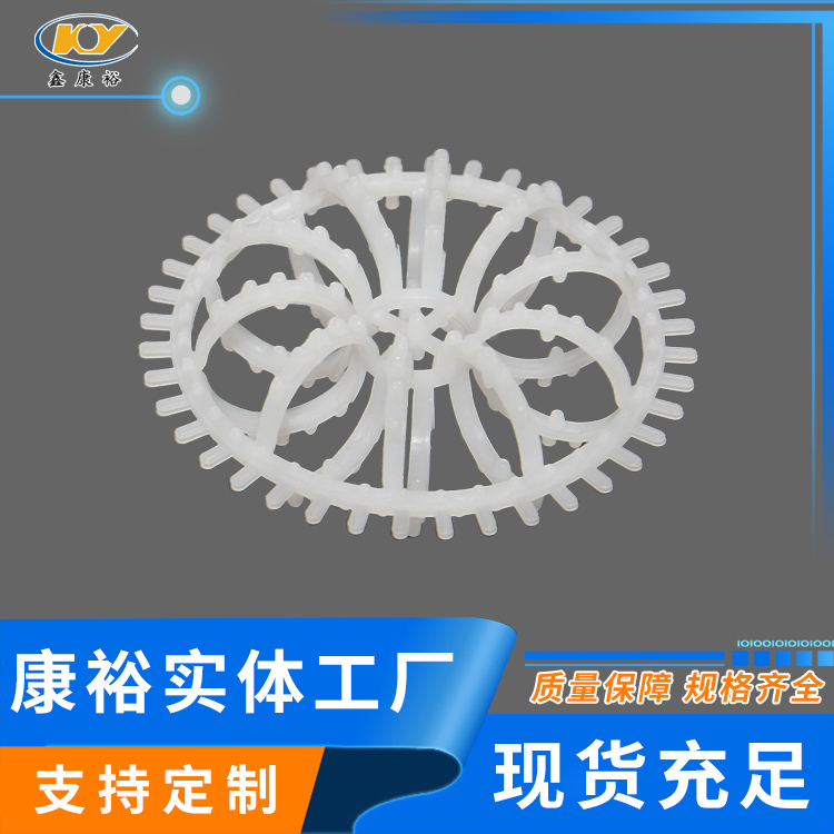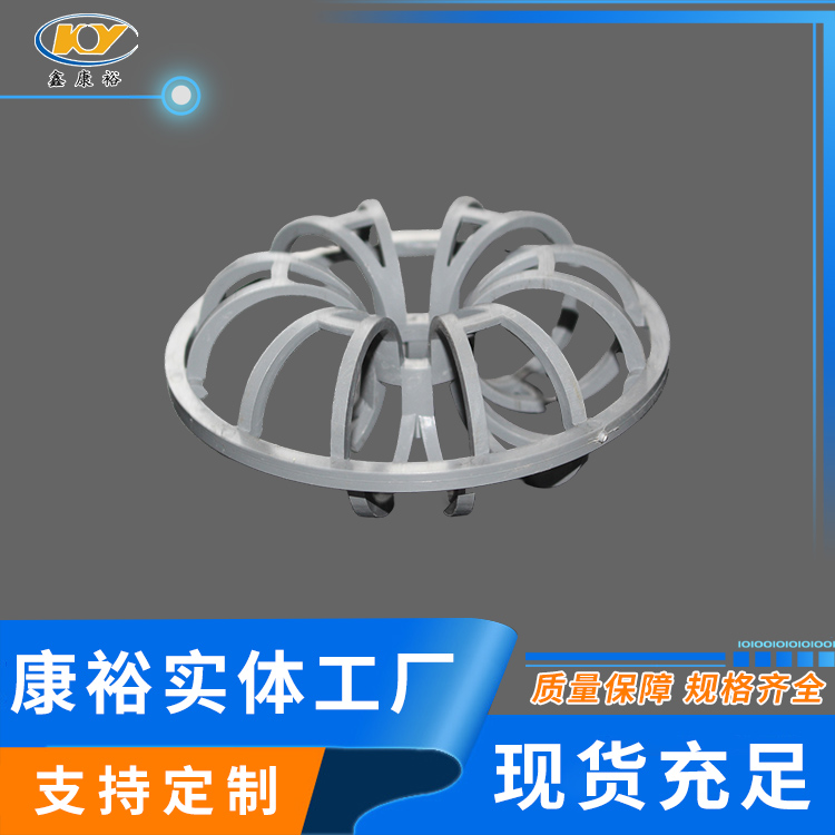 塑料花環(huán)填料早是由美國(guó)A.J.Teller于1954年研制開發(fā)出來(lái)的,故而常稱之為泰勒花環(huán)(TellerRosette)。由于填料的空隙處能有較高的持液量,可使塔內(nèi)液體的停留時(shí)間較長(zhǎng),從而增加了氣液兩相的接觸時(shí)間,提高了填料的傳質(zhì)效率。 花環(huán)填料也稱梅花環(huán)填料塑料花環(huán)填料是由12個(gè)小圓環(huán)按徑向排列而組成的一個(gè)大扁球體,很類似于一個(gè)螺旋形彈簧首尾相接繞成的一個(gè)圓球體。有的小圓呈A字;有的在小圓和大圓邊沿還帶有齒;有的外圍沒(méi)有大圓圈,只有里面的小圓組成等,客戶可根據(jù)各自的要求訂購(gòu)不同種類的花環(huán)。